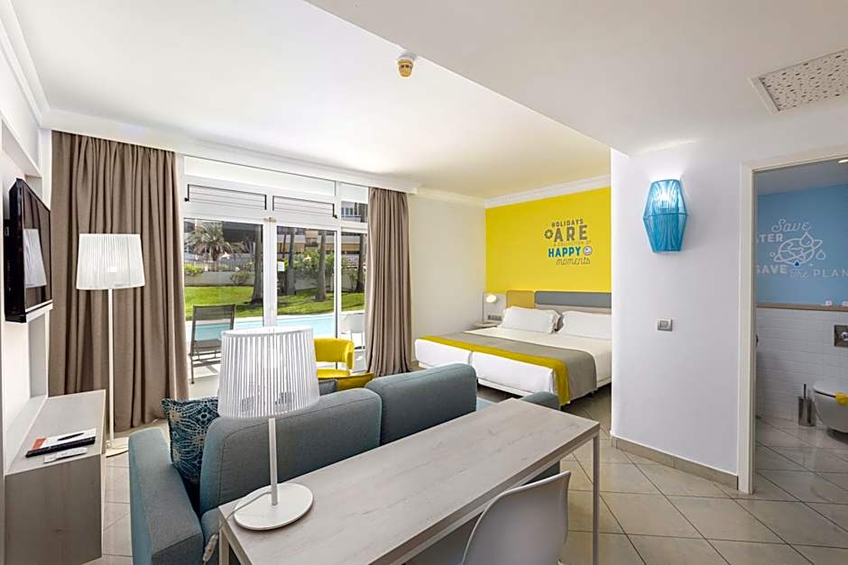 The spacious double room features air conditioning, a mini-bar, a balcony with sea views as well as a private bathroom boasting a walk-in shower.