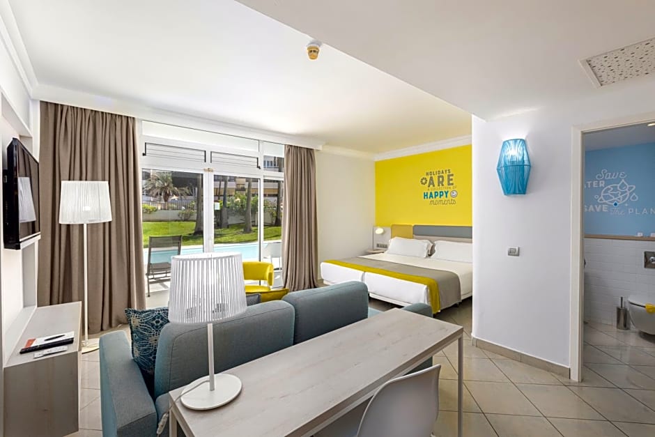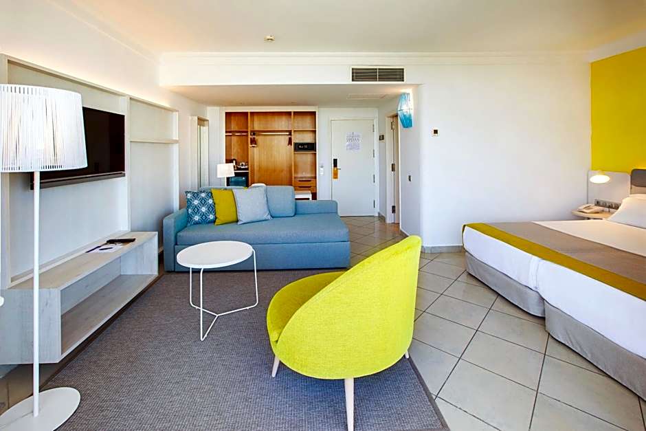 DOUBLE DELUXE POOL 1 ADULT (Adults Only +18years) is 334 square feet and includes a single bed 80-130 width plus a sofa bed plus balcony, satellite tv , cable tv, hairdryer, and safe and is Wheelchair-accessible.